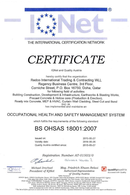 Redco International has an BS OSHAS 18001: 2007 certified Occupational Health and Safety Management System, the company is committed to,